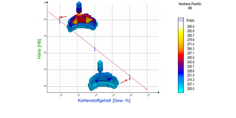 Mit dem in MAGMASOFT® integrierten MAGMA PRINZIP durchläuft die Software verschiedene Varianten für Gießtechnik und Fertigungsbedingungen. Dies geschieht automatisch, schnell und umfassend. MAGMASOFT® unterstützt Sie dadurch bei der Ermittlung anforderungsgerechter, robuster oder optimierter Prozessbedingungen. Unterschiedliche Ziele können gleichzeitig unter Berücksichtigung aller wesentlichen Freiheitsgrade mit unterschiedlichen Qualitätskriterien, die für Eisenguss entscheidend sind, verfolgt und bewertet werden.